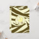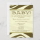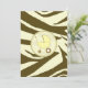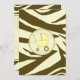 Une invitation avec un arrière - plan brun en forme de zèbre plutôt que le beige chaud avec une garniture jaune clair. Personnalisez le texte marron avec les détails de votre événement. Le côté opposé est une impression zébrée solide avec un chariot de bébé jaune à l'intérieur d'un cadre en forme de cercle correspondant.