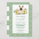 Qui n’aime pas les chiens et les bébés ? Cette invitation au baby shower de chien est un excellent choix pour les amoureux de les chiens. Au sommet du invitation, un bulldog français entouré de fleurs colorées sourit sur vous. Sous le dessin de chien, la légende, "Nous ajoutons à notre pack!" annonce l’occasion amusante à vos invités. Le texte est entouré d'une bordure verte non sexiste avec des empreintes de pattes blancs et des pieds bébés. Célébrez la venue de votre nouveau bébé avec cette invitation mignonne et baby shower de chiots.