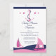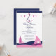 Baby shower nautique moderne Invitation avec voilier bleu & rose sur un arrière - plan blanc immaculé avec une ancre rose et des étoiles roses. Parfait pour un baby shower de bébé ou un bébé. baby shower de fille. Visitez notre boutique pour voir notre grand choix de voiliers nautiques bébé. invitations à la douche. ©Dessins Blackleaf