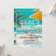 Préparez-vous à célébrer l'été avec style grâce à notre invitation de fête de plage estivale, qui présente une scène de plage vibrante et une écriture élégante pour donner le ton parfait à votre événement. Cette invitation capture l'essence d'une fête de plage animée, avec un bar de plage pittoresque, des palmiers qui se balancent et des vagues douces qui viennent lécher le rivage.