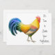 Design artistique original d'un coq coloré Ardenner par la designer Carolyn McFann de Two Purring Cats Studio sur des invitations personnalisables à thème poulet / ferme.