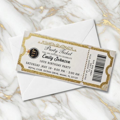 Une invitation sous forme de billet de fête est une façon créative et élégante d'inviter des gens à une occasion spéciale, conçue pour ressembler à un billet d'entrée pour un concert, un film ou un autre événement amusant. Ce type d'invitation comprend toutes les informations importantes sur la fête tout en ajoutant une touche ludique et thématique qui fait que les invités se sentent excités et intéressés. Elle allie praticité et divertissement, faisant de l'invitation elle-même une partie de la célébration. Voici quelques-unes des principales caractéristiques et éléments d'une invitation sous forme de billet de fête.