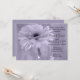 Invitez vos invités à célébrer les jeunes mariés le matin après leur cérémonie de mariage avec la jolie invitation au brunch d'après-mariage aux marguerites teintées de pourpre. Cette élégante invitation personnalisée pour le petit-déjeuner ou le déjeuner d'après-mariage présente une photographie florale numérique améliorée d'une fleur de marguerite gerbera sur la tige dans un vase en verre avec une teinte lavande clair ajoutée.