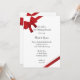 Invitez vos invités à poursuivre la fête le matin après la cérémonie de mariage en décembre avec l'Invitation au brunch d'hiver de mariage après-cérémonie avec rubans rouges. Cette élégante invitation personnalisée pour le petit-déjeuner ou le déjeuner après le mariage en hiver présente un design de ruban rouge élégant ornant les coins avec un fond blanc qui ressemble à un cadeau de Noël enveloppé.