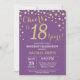 18e anniversaire Invitation avec Arrière - plan Diamant de Parties scintillant violet et or. Gold Confetti. Anniversaire adulte. Hommes ou femmes, anniversaire.
