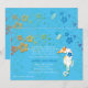 Une belle invitation à la fête, sur le thème de l'été. La arrière - plan bleue est agrémentée d'un motif moelleux à bulles recouvert de fleurs tropicales colorées et d'un cheval de mer blanc et fleuri.La carte est facile à customiser avec votre libellé, police, couleur de police et choix de six types de papier.