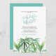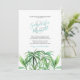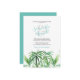 Cette simple invitation à un dîner de répétition en plein air présente vos noms dans une typographie élégante et manuscrite dans des couleurs de mariage verre de mer avec les détails de l'événement dans une police classique serif gris charbon sur un fond blanc croquant. Une réplique de mes feuilles tropicales originales à l'aquarelle dans des nuances de vert orne le devant. La carte d'invitation est à l'arrière d'une couleur aqua complémentaire. Un choix chic côtier et élégant pour des mariages décontractés sur la plage de Floride ou une fête dans un jardin tropical.