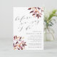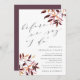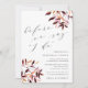 L'invitation élégante et rustique au dîner de répétition comporte des lettres brun prune foncé dans un bloc chic et des italiques avec des accents de calligraphie, avec des jets de feuillage automnal aquarelle aux coins dans des tons riches de récolte automnale de pourpre et de prune dorée.