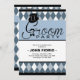 Réunissez les gentlemen pour une soirée de débauche et de plaisir avec cette invitation classique. La carte présente le mot "Groom" avec une moustache et un chapeau haut de forme sur un motif de diamants masculins.