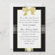 Belle faire-part de mariage noire, blanche et jaune, aux accents plaid et à la pointe d'un joli arc jaune. Customisez tous les champs de texte à vos besoins. Modifiez également le style de texte et la couleur si vous le souhaitez.