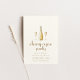 Ce modèle d'invitation à une soirée sur le thème français élégant présente un design chic avec une bouteille de champagne au centre, flanquée de deux verres à champagne scintillants de chaque côté. La bouteille et les verres sont subtilement détaillés, évoquant un sentiment de sophistication et de célébration. En dessous de ce centre de table, les détails de la fête sont magnifiquement affichés dans une police française ludique mais élégante, ajoutant une touche d'authenticité à l'ensemble du thème. Le modèle capture l'essence du charme parisien, ce qui le rend parfait pour une soirée remplie d'élégance et de joie de vivre.