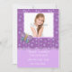 Jolie et féminine invitation à la photo avec fleurs violettes, dentelle et joli papillon. Parfait pour les anniversaires de filles de tous âges. Facile à customiser avec les détails de votre événement et votre propre photo.