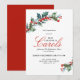 Cette invitation festive et élégante a été créée pour annoncer un programme musical spécial et un service de lecture des Écritures généralement organisés pendant la saison de l'Avent de Noël par les églises, les chœurs et les orchestres. Elle présente des feuilles de houx et des baies aux couleurs vives en aquarelle sur les coins opposés de la carte et une mise en page de texte élégante annonçant l'événement. Personnalisez le modèle de texte avec vos informations. Cette invitation/annonce peut être commandée au format imprimé ou au format téléchargement numérique pour être envoyée par voie électronique ou publiée dans le bulletin d'information de votre église. Choisissez simplement le format souhaité lors de la passation de votre commande.