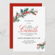 Cette invitation festive et élégante a été créée pour annoncer un programme musical spécial et un service de lecture des Écritures généralement organisés pendant la saison de l'Avent de Noël par les églises, les chœurs et les orchestres. Elle présente des feuilles de houx et des baies aux couleurs vives en aquarelle dans les coins opposés de la carte et une mise en page de texte élégante annonçant l'événement. Personnalisez le modèle de texte avec vos informations. Cette invitation/annonce peut être commandée au format imprimé ou au format numérique à télécharger pour être envoyée par voie électronique ou publiée dans le bulletin d'information de votre église. Choisissez simplement le format souhaité lors de la commande.