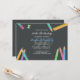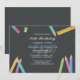 Un tableau noir, des crayons colorés, un aiguilleur de crayon et une règle agrémentent l'invitation à l'anniversaire de ce professeur. Changez l'année arrière - plan pour refléter l'année d'anniversaire que vous fêtez.