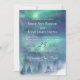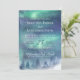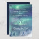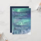 Les lumières romantiques du Nord ont inspiré le faire-part de mariage dans les tons bleu, violet et vert de l'eau avec de grands pins de montagne et un ciel étoilé scintillant pour une touche de scintillement.