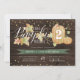 Tombez amoureux de ces invitations rustiques et élégantes à des soirées anniversaires de enfants dans une palette de couleurs d'automne orange, vert chasseur et marron. "Notre petit citrouille tourne" apparaît en haut dans le script de calligraphie chic en lettrant, avec l'âge de votre enfant inscrit sur un citrouille orange, sur un arrière - plan rustique en planche de bois foncé. Exemple présenté pour un deuxième anniversaire. Personnalisez avec les détails de votre fête d'anniversaire en dessous en lettres blanches.