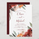 Fleurs Roses florales chic et moderne Burnt Orange et Bourgogne Boho Bohemian Botanical Greenery Watercolor Frame Automne (Automne), Hiver, Printemps ou Été Invitations - comprend une belle et élégante typographie de scénario pour la célébration spéciale de mariage.