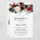 Cet automne rustique moderne calligraphie l'invitation de la fête de graduation est parfait pour une célébration simple. Le design est composé de fleurs bordeaux, rouges, navales, bleues et rousses rayonnantes et gracieuses peintes à la main, inspirant la beauté naturelle.