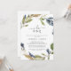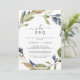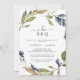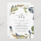 Cette invitation à la fête de fiançailles I Do BBQ automne est parfaite pour une fête de fiançailles d'automne, une douche en couple, un dîner de répétition, après la fête ou tout événement mariage. Le design rustique moderne présente des feuilles bleu marine, vert sauge et or avec des branches de fleurs bleu foncé.