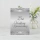 Élégantes invitations d'anniversaire de mariage d'argent pour une réception / fête de 25 ans de mariage. Avant et arrière argent avec texte noir au dos donnant un look classe à cette invitation d'anniversaire unique.