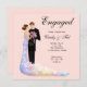 Célébrez la bonne nouvelle de vos fiançailles avec votre famille et vos amis en envoyant ces magnifiques invitations à une fête de fiançailles. Ce design moderne présente un couple élégant habillé en tenue de soirée et se regardant amoureusement. Les couleurs pastel font de cette invitation de fiançailles un élément stylé. Ce design fait partie d'une collection de fiançailles et est disponible sur des enveloppes, des étiquettes de vin, des ballons de table, des serviettes en papier, des banderoles, des étiquettes de faveur et des boîtes de faveur.