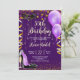 Invitation avec ballons dorés et violets et champagne.