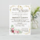 Belle invitation de mariage avec cadre doré moderne et floral bordeaux, parfaite pour votre événement.