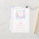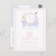 Invitation carte postale avec monogramme en forme de blason d'Alice au pays des merveilles pour une fête d'anniversaire