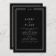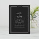 Ce faire-part de mariage double face de la suite Avery est doté d'un arrière - plan noir foncé, d'un cadre double blanc fin et d'un type sans serif propre. Il crée un look moderne et poli, adapté aux lieux de la ville, aux galeries et aux mariages du soir. Économisez du papier en incluant un code QR pour votre invité afin d'afficher les détails, RSVP ou les deux.