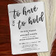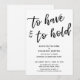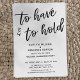 Invitez vos invités à votre célébration de mariage à l'aide de ces cartes d'invitation minimalistes et sophistiquées noir sur blanc. Dans le design, j'ai utilisé une police manuscrite moderne et décontractée pour créer une superposition de typographie graphique indiquant "to have & to hold" (il existe une autre version dans laquelle les premières lettres de la phrase sont en majuscules). Remplissez les espaces vides du modèle avec vos informations pour personnaliser le design. Toutes les couches ont été laissées déverrouillées afin que vous puissiez cliquer pour personnaliser davantage et repositionner le texte ou même changer les tailles ou les polices. La couleur de fond a été laissée blanche, mais elle est également modifiable ; changez-la pour l'une de vos couleurs de mariage si vous préférez. N'hésitez pas à nous contacter pour obtenir de l'aide pour la personnalisation ou si vous avez des
