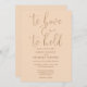 Ce faire-part de mariage de script élégant minimaliste de pêche douce peut être personnalisé avec vos informations en typographie chic avec les détails de votre site mariage et votre code QR au verso. Conçu par Thisisnotme©