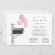 Un baby shower par courrier est parfait pour ceux qui vivent loin des êtres chers, mais veulent toujours doucher les parents d'être avec amour et des cadeaux pour se préparer à l'arrivée de leur bébé. Cette douche longue distance par invitation par courrier comporte une boîte aux lettres peinte à la main remplie de ballons roses et le poème de demande "Il est difficile de vivre si loin quand Baby Anderson est sur le chemin. Rassembler des êtres chers peut être si difficile Donc si vous voulez, s'il vous plaît envoyez votre cadeau ou carte. Et quand ils arriveront jour après jour, ils sentiront tout votre amour de loin." Customisez votre libellé. Cliquez sur "Customiser plus loin" pour modifier le style, la taille et la couleur de la police si vous le souhaitez.