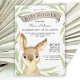 Les lapins lapins sont l'un des thèmes de baby shower les plus populaires en raison de la popularité des livres pour enfants avec des lapins. Cette jolie aquarelle a un lapin marron avec un visage adorable et est encadrée dans un motif vert feuillu et feuillu. Le jeu de couleurs fonctionne très bien pour les garçons et les filles. Personnalisez l'exemple de texte avec vos spécifications.