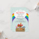 Un Arche plein d'animaux mignons flotte sous un arc-en-ciel et des gouttes de pluie en forme de coeur pour accueillir vos invités à votre événement spécial! Chaque ligne de texte est entièrement personnalisable pour dire exactement ce que vous voulez.