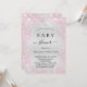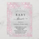 Un baby shower moderne et élégant, célébrant une petite fille. Arrière - plan métallique argent Faux décoré de poussière de parties scintillant rose faux. Personnalisez et ajoutez un nom et des détails du parti. Lettres de couleur noire.