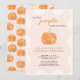 Fêtez l'arrivée d'un petit citrouille d'automne avec ce design baby shower, parfait pour l'automne. Doté d'un script moderne, le texte du coque inférieur et d'un citrouille aquarelle. Reverse comporte un motif citrouille correspondant. Vous pouvez facilement customiser l'invitation à votre goût en modifiant n'importe quel texte. Art original de Nic Squirrell.