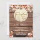 Une invitation baby shower super mignonne avec de jolies lampes à cordes, des feuilles floraux rustiques et des citrouilles personnalisés avec vos détails spéciaux d'événement ensemble dans la typographie élégante sur un arrière - plan de panneaux de bois. Conçu par Thisisnotme©