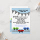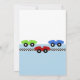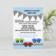 Adorable Race voiture thème baby shower invitation en bleu bébé avec le drapeau de checker et voitures de course colorées.