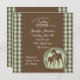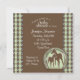 Cette invitation de baby shower avec des chevaux est conception avec le plaid vert et brun. Les chevaux se tiennent devant la forme en fer à cheval faite avec un plus petit plaid. Ceci fait une grande invitation pour n'importe qui qui aime des chevaux.
