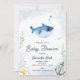 Baby shower invitation thème bébé requin. Cet invitation baby shower a des illustrations aquarelles peintes à la main, un mignon petit requin et des éléments sous-marins. Idéal pour une soirée de douche à thème nautique. Une partie du texte est modifiable.