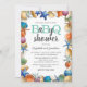 Invitation de baby shower de barbecue côtier estival avec un fond blanc élégant qui peut être changé en n'importe quelle couleur, des étoiles de mer et des coquillages colorés, et un modèle de célébration de baby shower de couple facile à personnaliser.