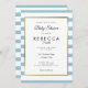 Invitation Baby shower Bébé classique Bleu à rayures / Sprink
