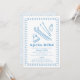 Célébrez votre petit en chemin avec une invitation chaleureuse au baby shower Après Bébé d'inspiration montagnarde. Ce design hivernal présente des illustrations dessinées à la main en bleu doux, dont des skis, des bâtons, une beanie et une biberon douce, encadrées par une bordure de gribouillis sur un arrière - plan blanc immaculé. L'envers est orné d'un arrière - plan bleu clair parsemé de neige tombante. Parfait pour un baby shower de garçon avec une ambiance rustique hivernale de pays des merveilles. Un choix unique et charmant pour les parents qui aiment les pistes, après le ski confortable et fêter dans le style hivernal.