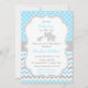 Invitation Baby shower bleu et gris éléphant. L'arrière - plan est pois bleu et chevron bleu et gris. Le texte peut être modifié pour répondre à vos propres besoins OEuvre artistique de Mels Brushes