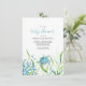 Cette invitation à baby shower blanc et bleu blanc et blanc fantaisie comporte les mots "Baby shower" mis dans une typographie stylée à la main avec détails de l'événement dans un gris charbon police serif classique sur un arrière - plan blanc immaculé avec un fond de fond de tortue marine, étoiles de mer, corail de mer et algues. La carte invitation revient à une couleur turquoise offerte. Une idée simple mais mignonne pour un thème de baby shower Under The Sea boy. Pour voir l'ensemble de la suite, visitez le www.zazzle.com/dotellabelle Unique aquarelle art et design de Victoria Grigaliunas de Do Tell A Belle sur Zazzle.