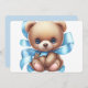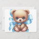 Créez une invitation de baby shower unique et spéciale avec le bleu comme couleur focale. Teddy Bear Blue design sur le devant avec les détails de votre événement, y compris l'invité d'honneur, la maman-to-be, les informations sur le lieu, l'hôte, et le registre sur le dos. Utilisez le modèle pour personnaliser. Invitation baby shower Bleu Ours Teddy.