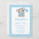Invitation baby shower avec un Ours mignon dans un sweat - shirt à capuche bleu et ballons bleus. Super invitation pour la mère d'être. Customisez avec les détails de votre fête.