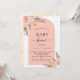Pour un baby shower moderne. Un cadre d'arc, blanc et rose arrière - plan couleur or. Décoré de fleurs roses d'or et de rose, de roses et d'herbe de pampas. Personnalisez et ajoutez un nom et des détails. Dos : rose léger imprimé en marbre doré.