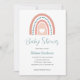 Une belle invitation baby shower avec un élément arc-en-ciel de style boho, tout le texte peut être entièrement customisé pour votre célébration familiale.